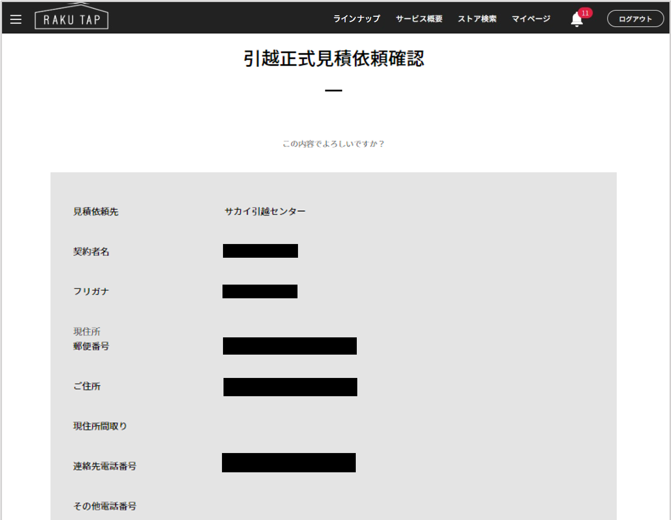 - 正式見積もりを依頼をクリックすると引越正式見積依頼が完了します。