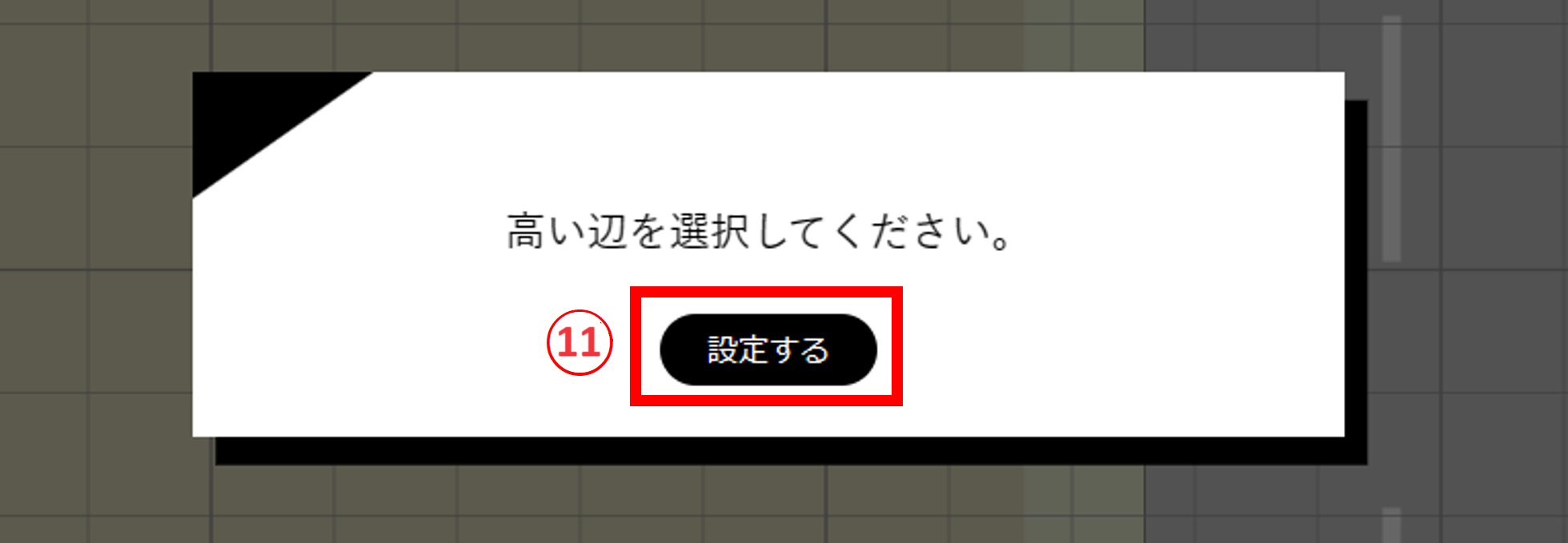 - 高低差がある場合は、まず高い辺を選択します。設定するをクリックします。